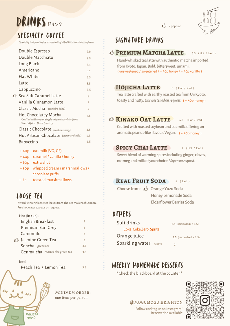 The menu at MOGUMOGU presents a thoughtful selection of Japanese dishes and drinks, designed to offer comforting and satisfying moments throughout the day. Whether you're stopping by for a relaxed lunch, a cozy afternoon break, or a casual evening meal, the offerings strike a balance between simplicity and authenticity.